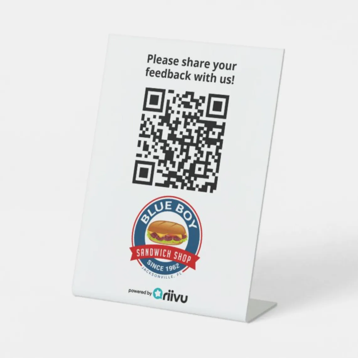 Receive a free review counter sign branded with your unique QR code & logo, making it easy for patrons to leave a positive review.